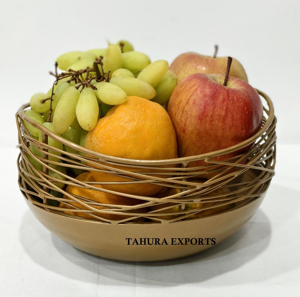 ตะกร้าผลไม้ตกแต่งแบบมีสายแนววินเทจใหม่ตะกร้าผลไม้แบบกลวงโปร่งขัดเงาสวยงามทันสมัย