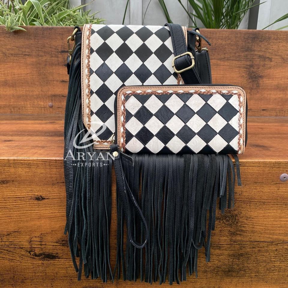 กระเป๋าถือและกระเป๋าสตางค์พร้อมสายรัดข้อมือเซตคอมโบ2ชิ้นสำหรับผู้หญิงแฟชั่นดีไซน์ลายตารางหมากรุกเครื่องมือด้วยมือสไตล์วินเทจใหม่