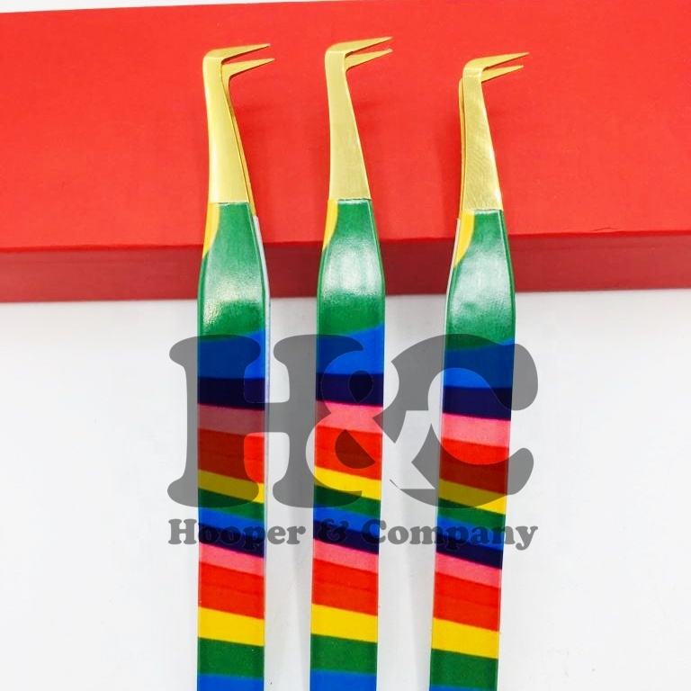 แหนบต่อขนตาแบบใหม่ รุ่นเรนโบว์ ปลายแบน ลายพิมพ์สีทอง ปลายแหลม คุณภาพสูง แหนบต่อขนตาแบบยั่งยืน พร้อมโลโก้ mink
