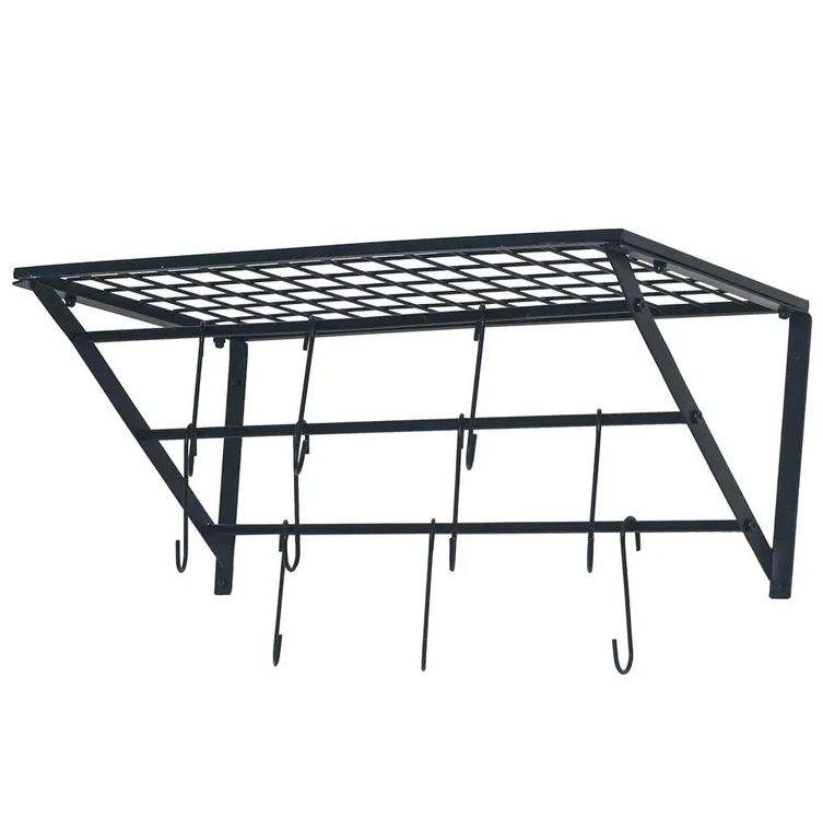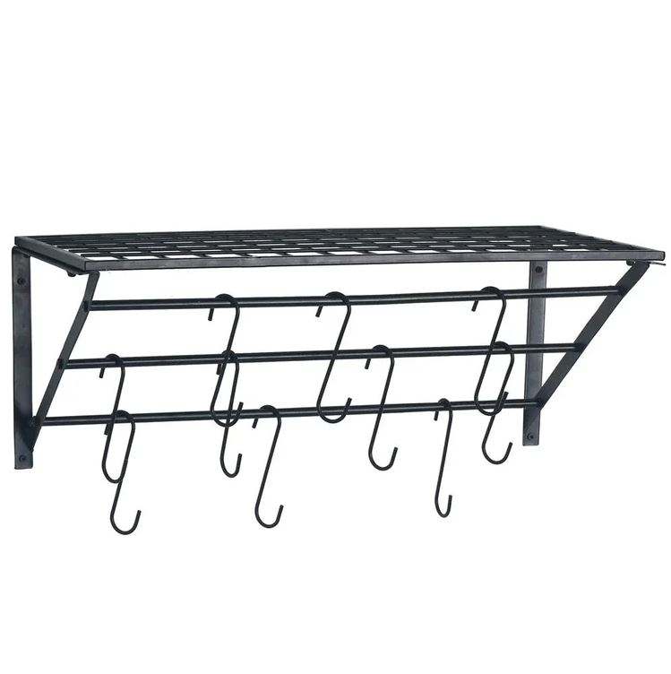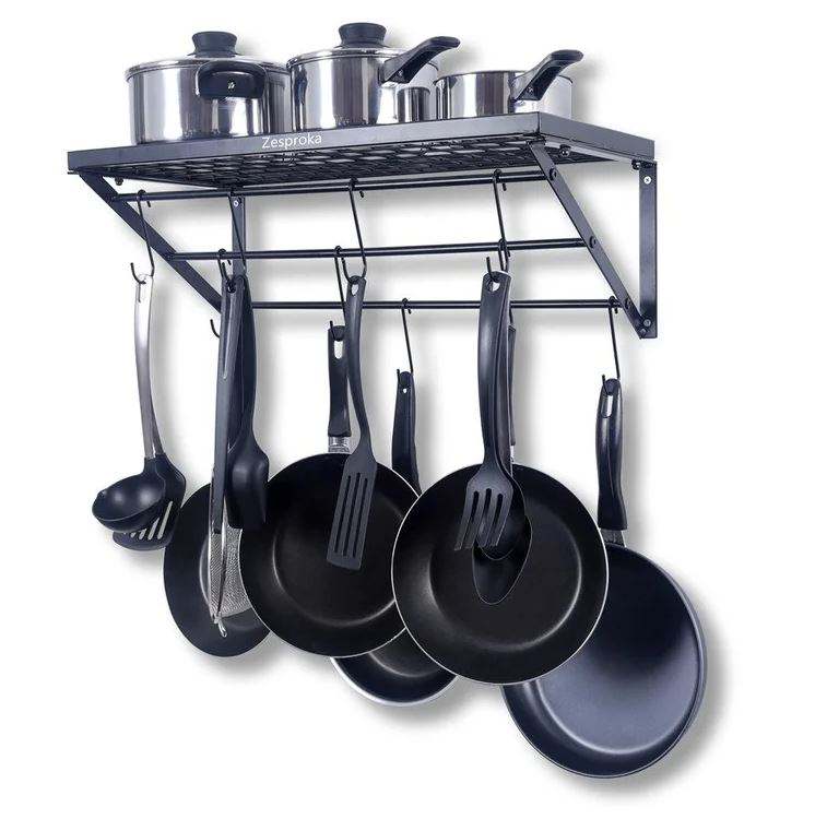 ชั้นวางหม้อโลหะแบบติดผนังใหม่สำหรับฝาหม้อและที่แขวนกระทะราวแขวนติดผนังชั้นวางของในครัว