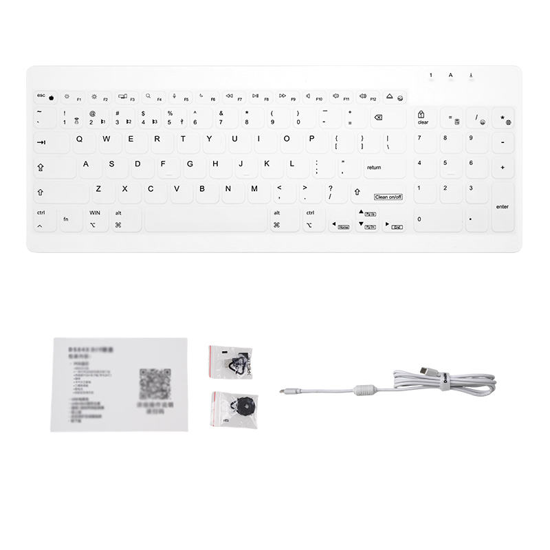 คีย์บอร์ดไร้สายแบบตั้งโต๊ะสำหรับโรงพยาบาลและอุตสาหกรรม แบบสามโหมด กันน้ำ ล้างทำความสะอาดได้ ฆ่าเชื้อได้ ขายส่ง