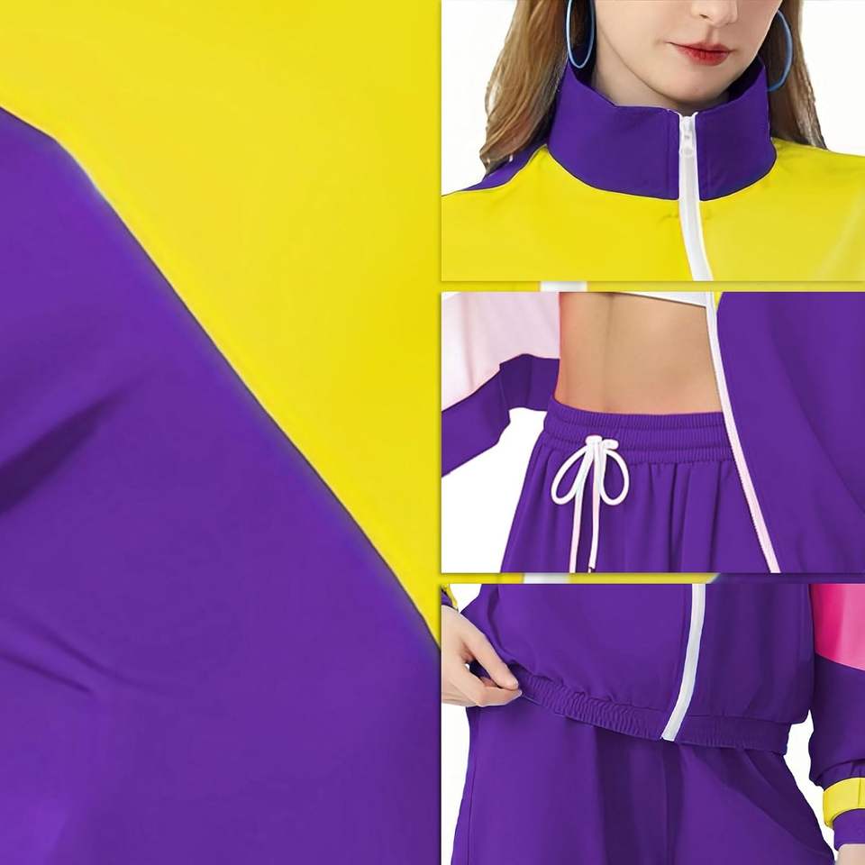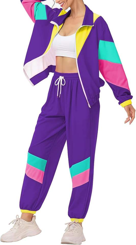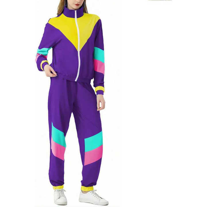 ชุดวอร์มผู้หญิงน้ำหนักเบาใส่ได้80S 90s ใหม่ชุดกันลมชุดออกกำลังกายย้อนยุคมีแจ็กเก็ตและกางเกงขายาว