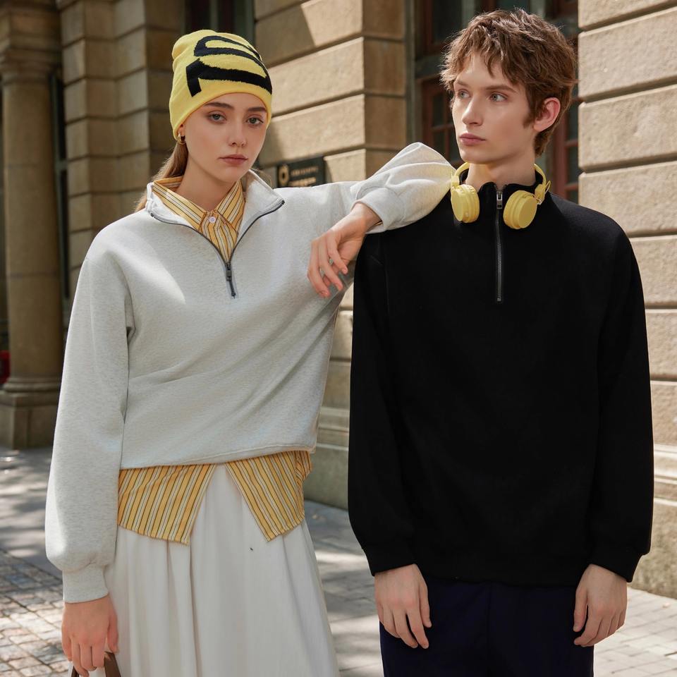เสื้อสเวตเชิ้ตผู้ชายแบบซิปครึ่งตัวทรงปกติ สไตล์ลำลอง พร้อมดีไซน์ซิปติดป้ายแบรนด์