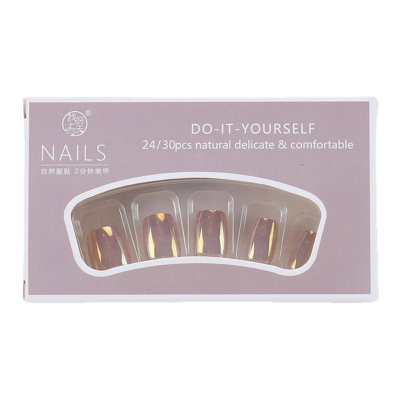 สติ๊กเกอร์ติดเล็บแวววาวสีม่วงสีทองสีทึบสดใสสไตล์ใหม่แบบสวมใส่ได้