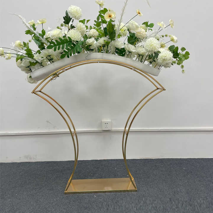 ชั้นวางดอกไม้ประดับโต๊ะชุบทองสำหรับงานแต่งงานแบบใหม่สำหรับฉากหลังถ่ายภาพดอกไม้สำหรับงานแต่งงาน