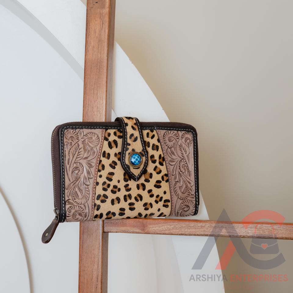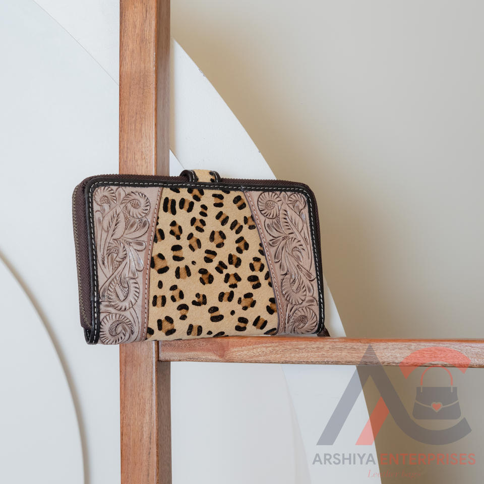 Type:Western Hair On Leopard Print Tooled Leather Wallets