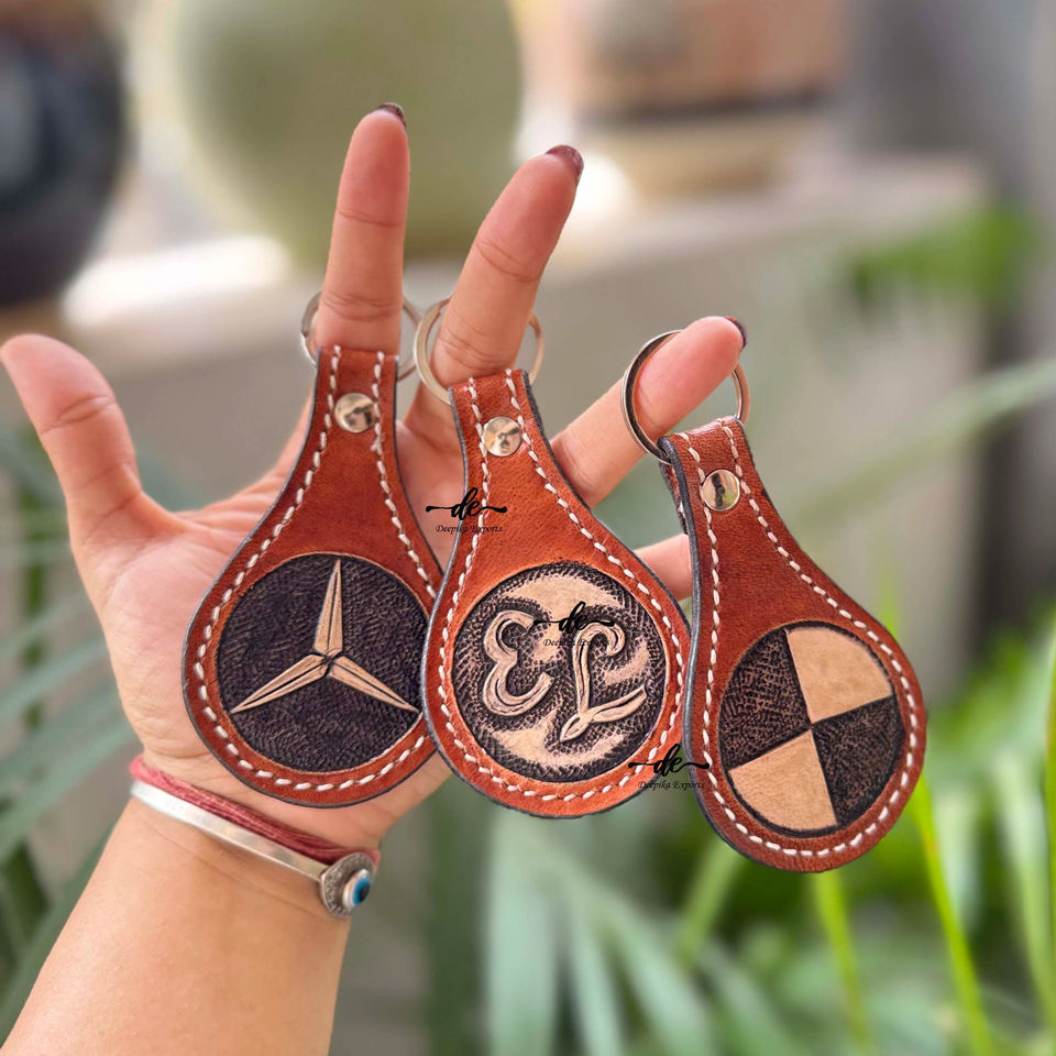 Product name:Hand Tooled Leather Keychain Turquoise Color Keyrings Keychains