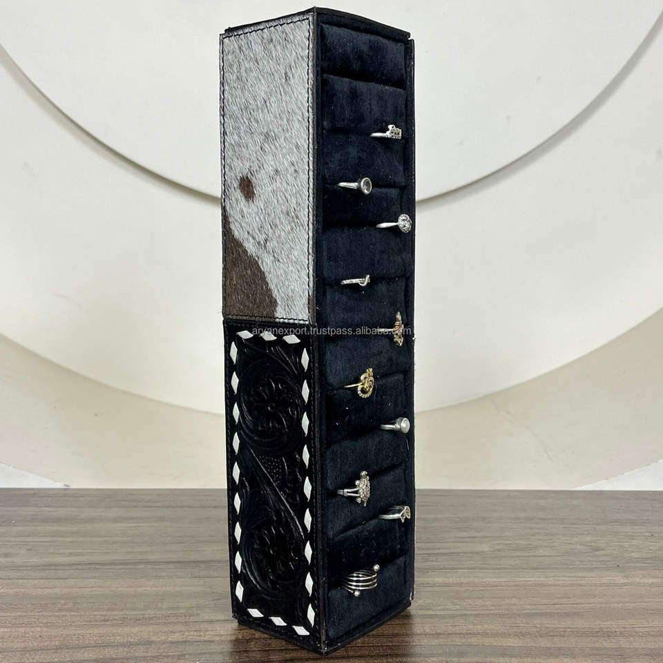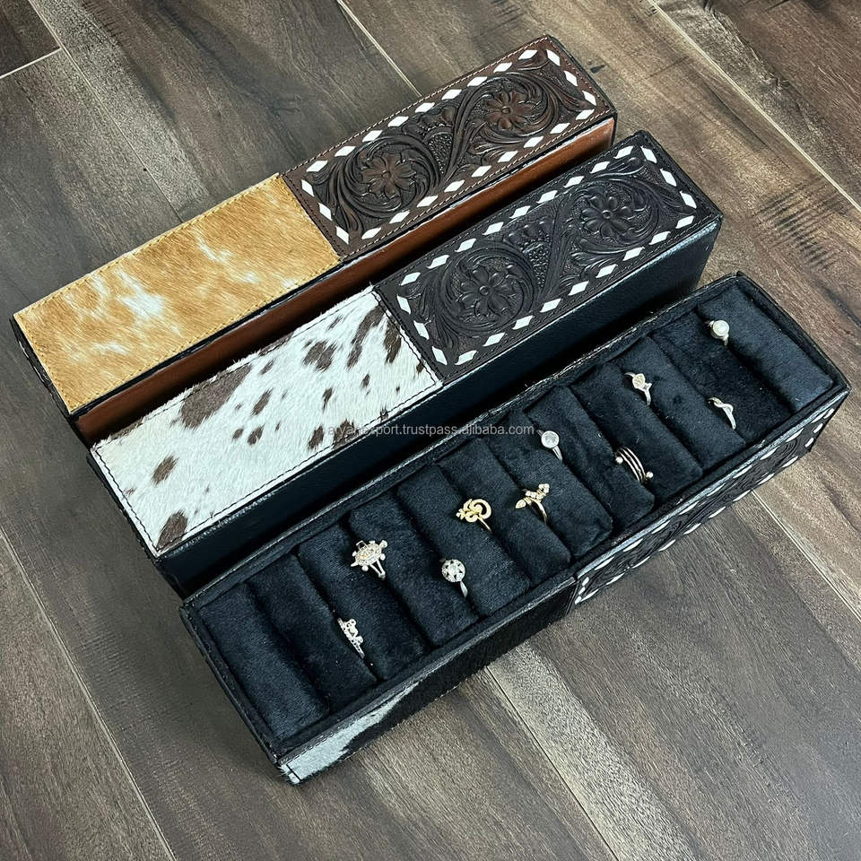 Hand Tooled Cowhide Leather Ring Display BoxProduct name