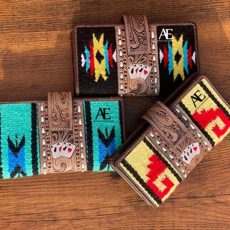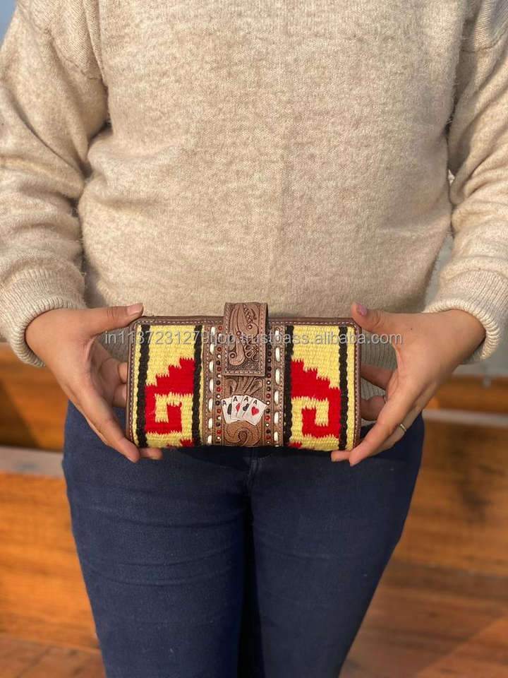 กระเป๋าคลัทช์หนังสไตล์ตะวันตก aztec tooled ใหม่ทำด้วยมือแท้สีน้ำตาลวินเทจที่ไม่ซ้ำกันออกแบบสำรับบัตรกระเป๋าสตางค์หนัง