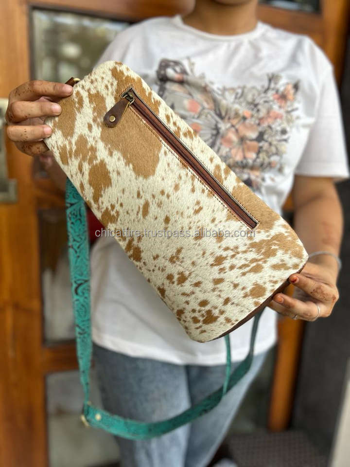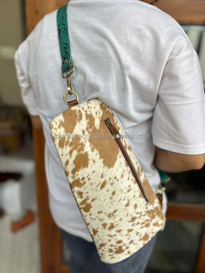 กระเป๋าคาดหน้าอกหนังวัวขนสไตล์ตะวันตกใช้ได้ทั้งชายและหญิงกระเป๋าคาดอกหนังขนพิมพ์ลายนูนสีพรีเมียมใหม่
