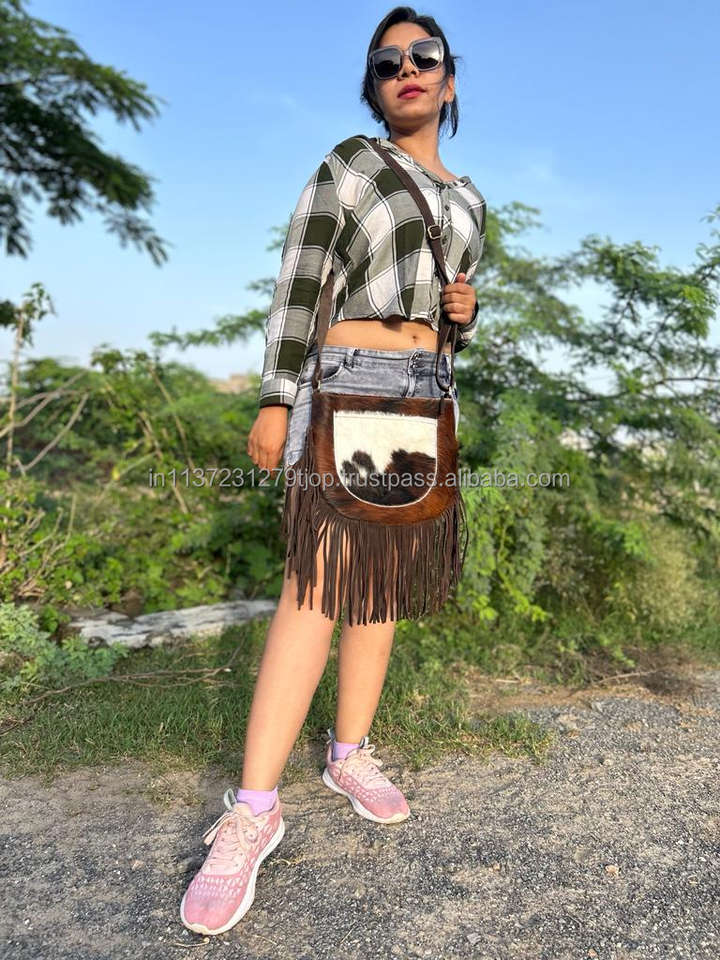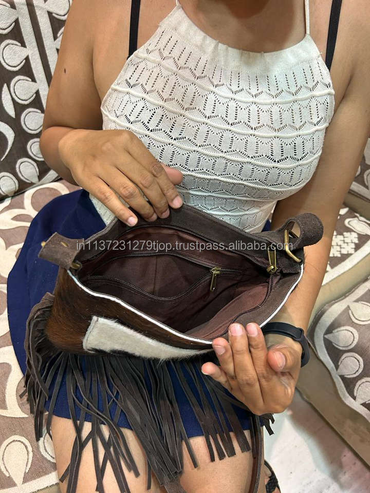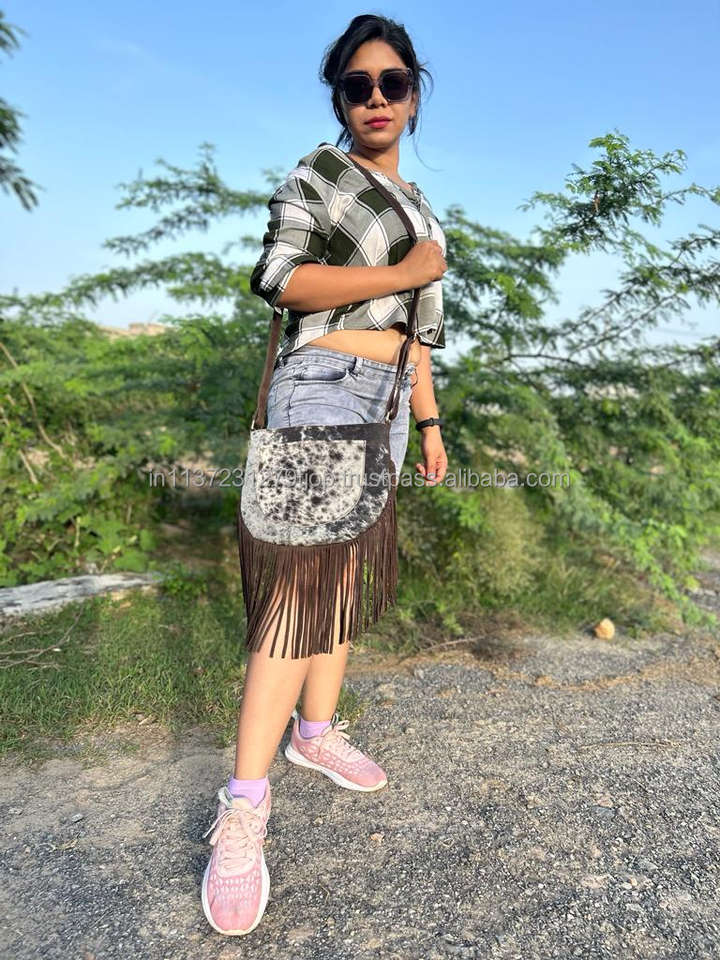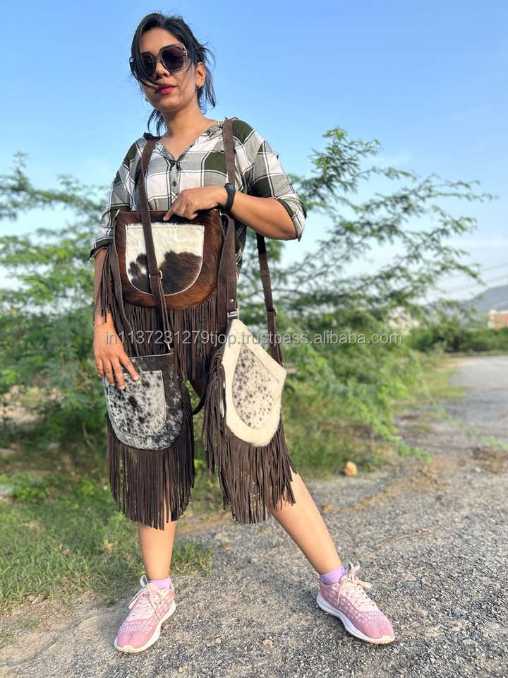 กระเป๋าสะพายพาดลำตัวหนังแท้สำหรับผู้หญิงหนังแท้ขนแกะสไตล์โบโฮใหม่