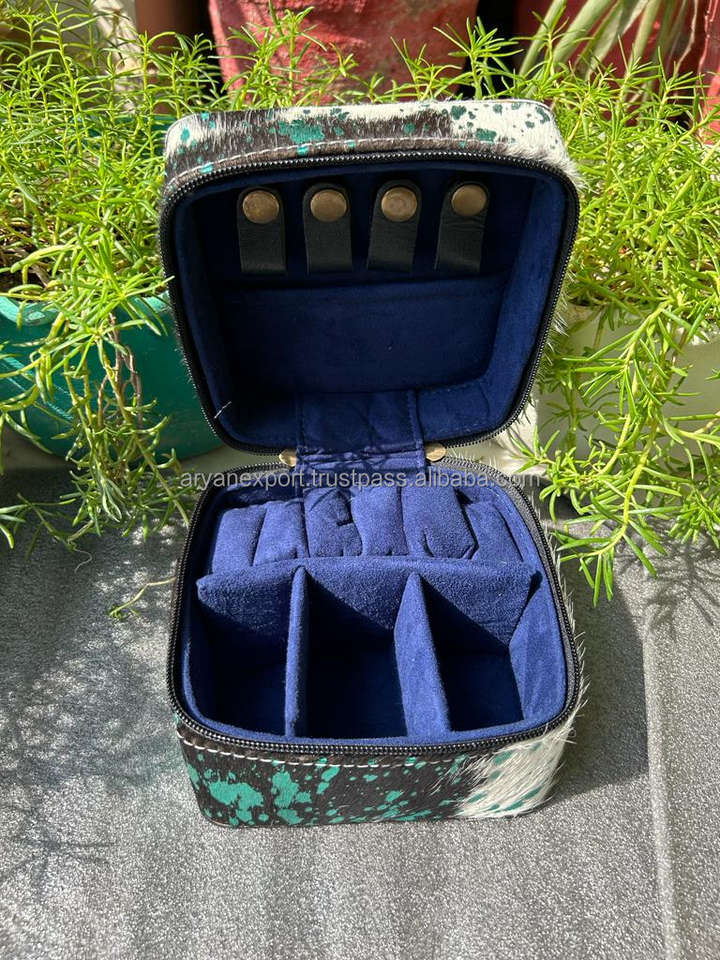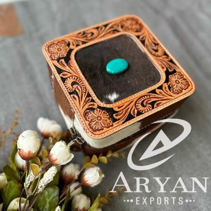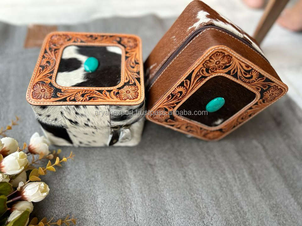 กล่องเครื่องประดับหนังขนแบบซ่อนทำด้วยมือสไตล์ตะวันตกใหม่กล่องเครื่องประดับที่ทำจากหินเทอร์ควอยซ์