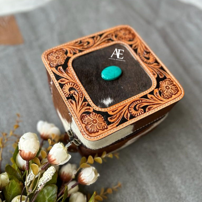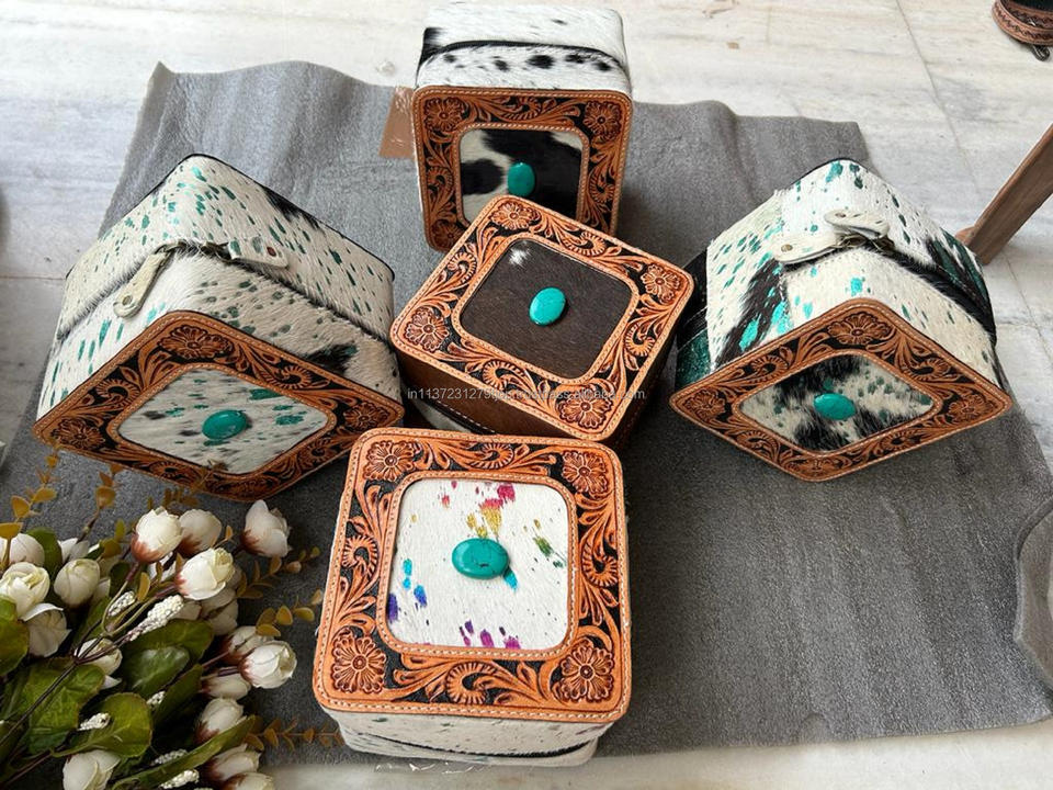 กล่องเครื่องประดับหนังขนแบบซ่อนทำด้วยมือสไตล์ตะวันตกใหม่กล่องเครื่องประดับที่ทำจากหินเทอร์ควอยซ์
