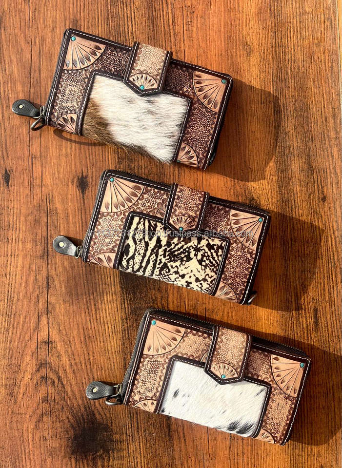 Type:Stylish Tooled Animal Print Fur Leather Wristlet Clutch