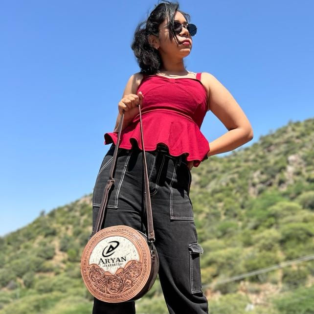 กระเป๋าหนังคาวไฮด์หนังวัวสไตล์ตะวันตก,กระเป๋าโรงอาหารกระเป๋าถือรูปทรงกลมกระเป๋ามีสายสะพายไหล่หนังเครื่องมือสำหรับผู้หญิง