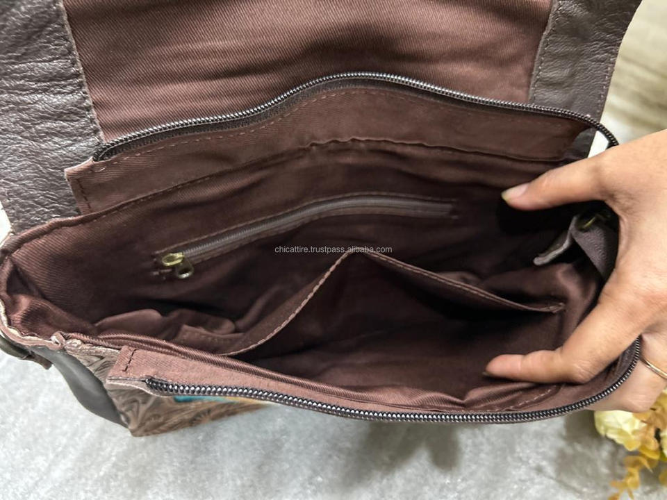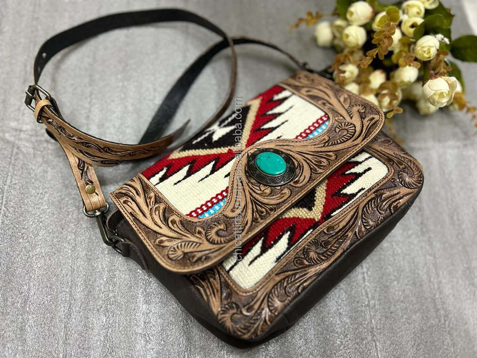 Product name:Tooled Aztec Leather Fashionable Crossbody Bag