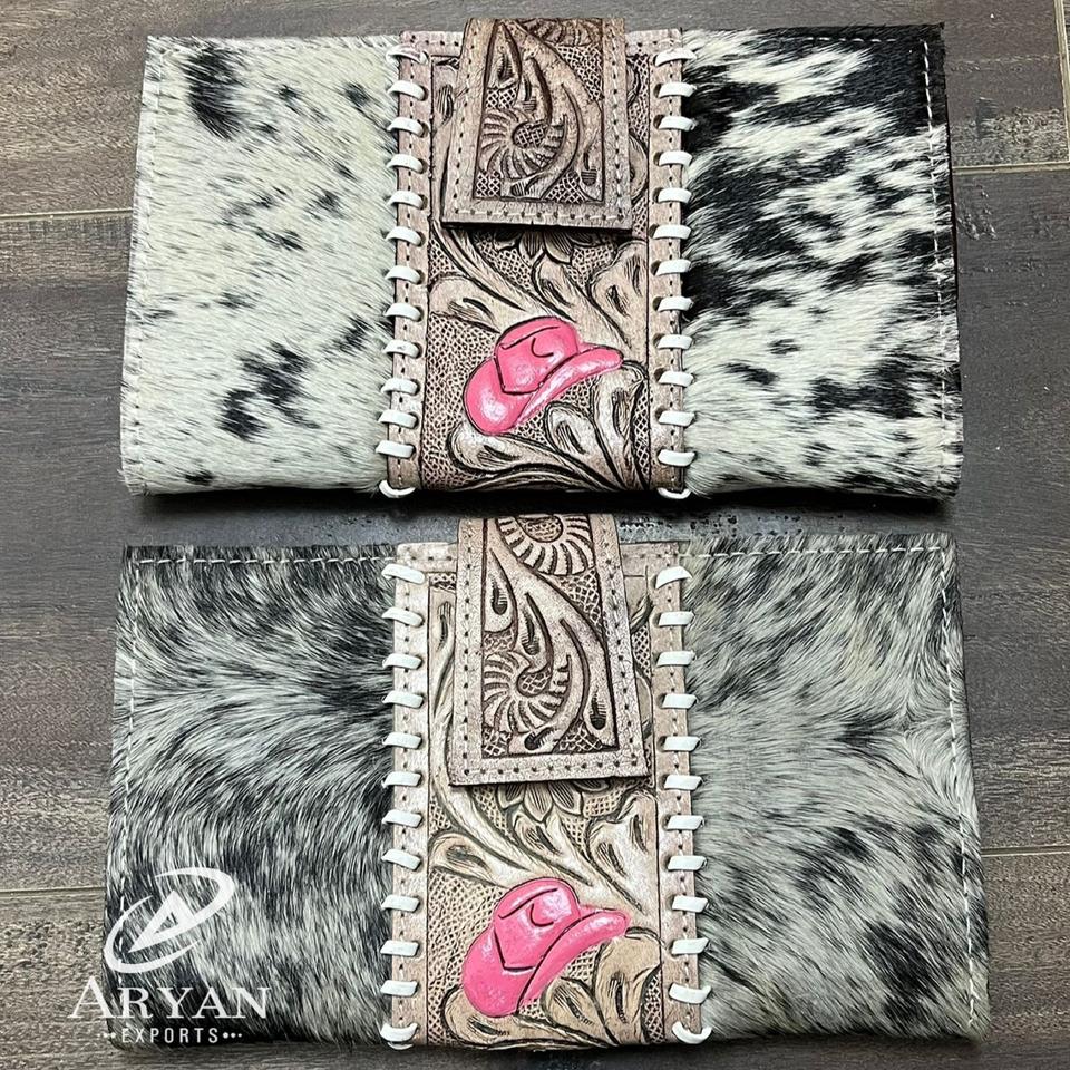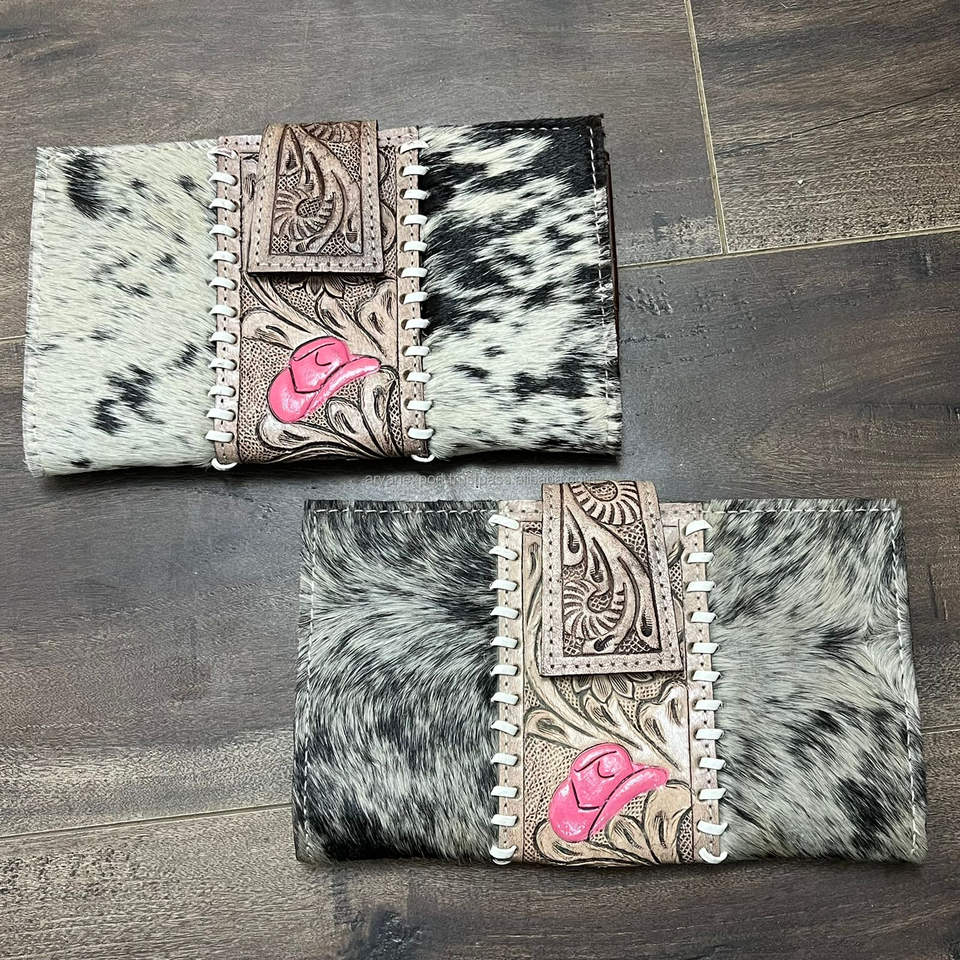 กระเป๋าสตางค์หนังวัวแท้สไตล์ตะวันตกแบบใหม่ งานแฮนด์เมด หนังแกะสลักลาย กระเป๋าสตางค์แบบพับสองตอน มีช่องใส่บัตรหลายช่อง