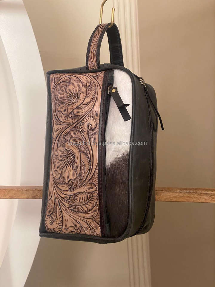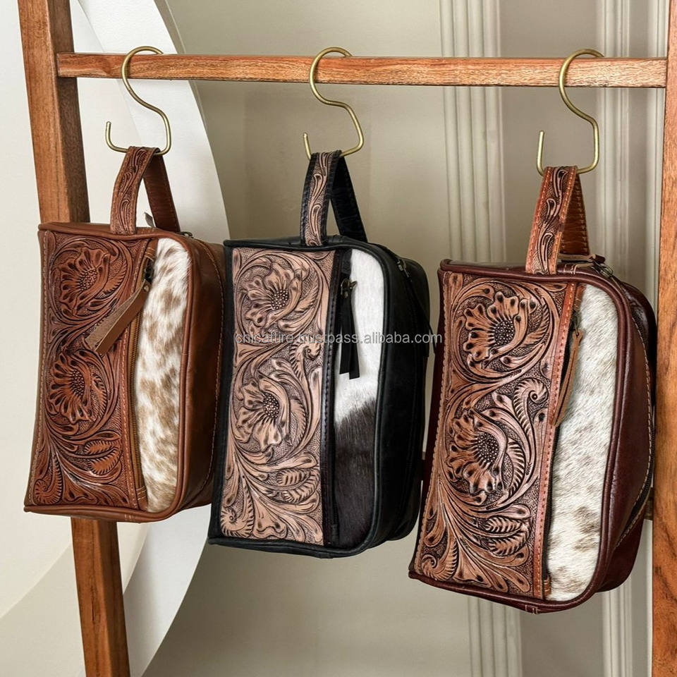 New Western Tooled Cowhide Leather Stylish Makeup Cosmetic Storage Box Hot Selling Jewelry Pouch ,Vanity Bathroom Organizer Box