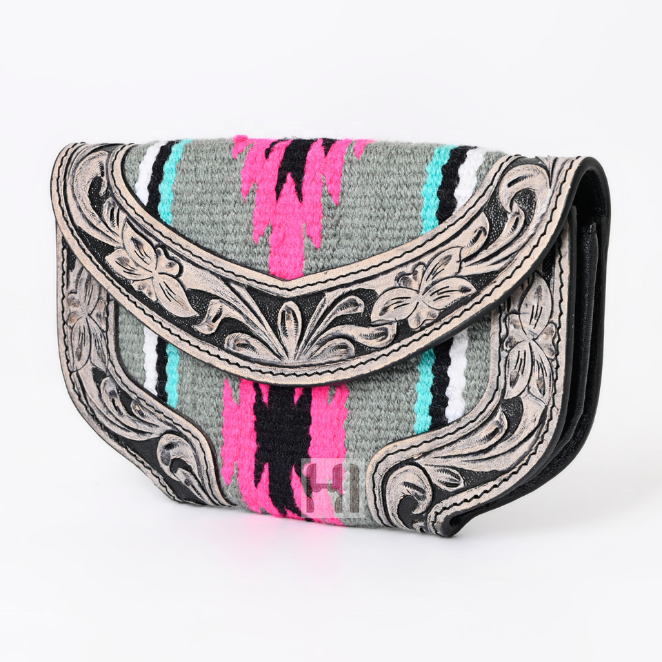 ALLY CHICK HANDTOOLED COWHIDE CLUTCH
