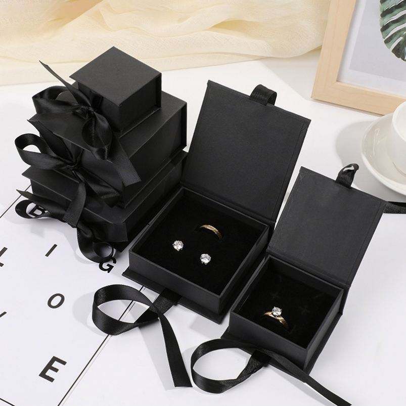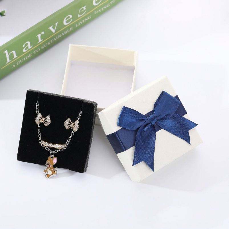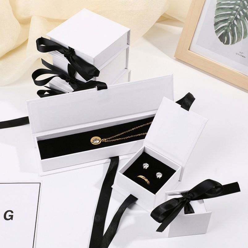 ใหม่กล่องของขวัญกระดาษแข็งแข็งพร้อมกล่องพลาสติกแบบพลิกสำหรับใส่ต่างหูแหวนผ้าสักหลาดสีขาว