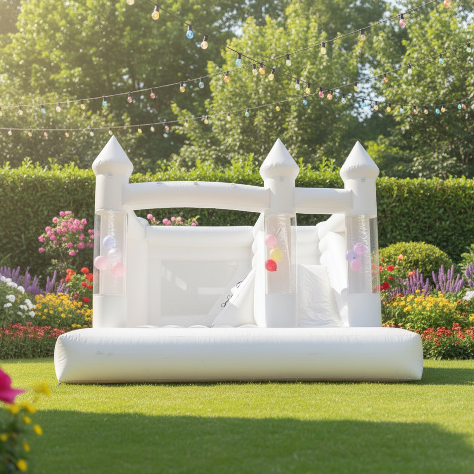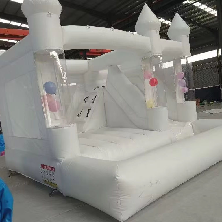 ปราสาทเป่าลมสีขาวพร้อมลูกบอล