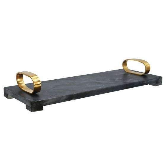 ถาดเสิร์ฟหินอ่อนสีขาวแบบใหม่ด้ามจับสีดำปรับแต่งได้จานจานแบบยั่งยืนห้องครัวบ้านปาร์ตี้