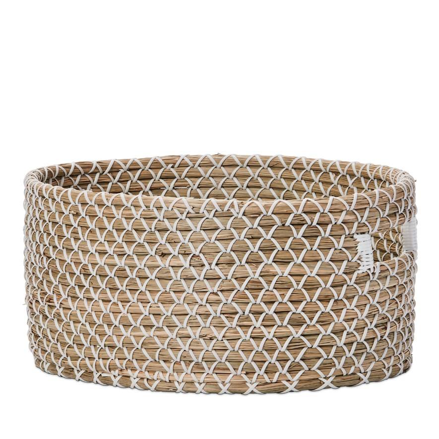 ตะกร้าสานใส่หญ้าทะเลสีขาว,ตะกร้าใส่ผ้าหญ้าทะเลแบบธรรมชาติสำหรับเก็บของในบ้าน