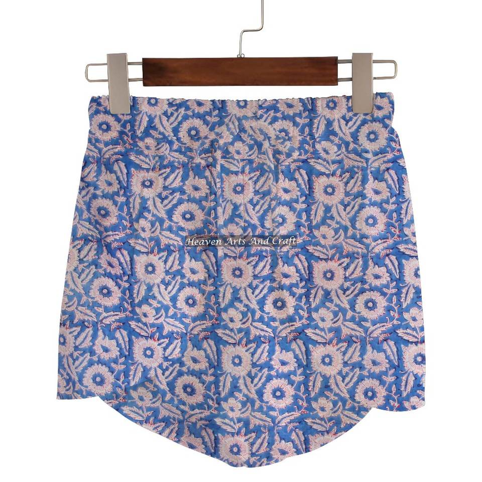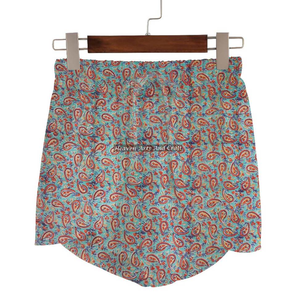 ชื่อสินค้า:กางเกงขาสั้นผ้าฝ้าย 100% พิมพ์ลายบล็อกมือ