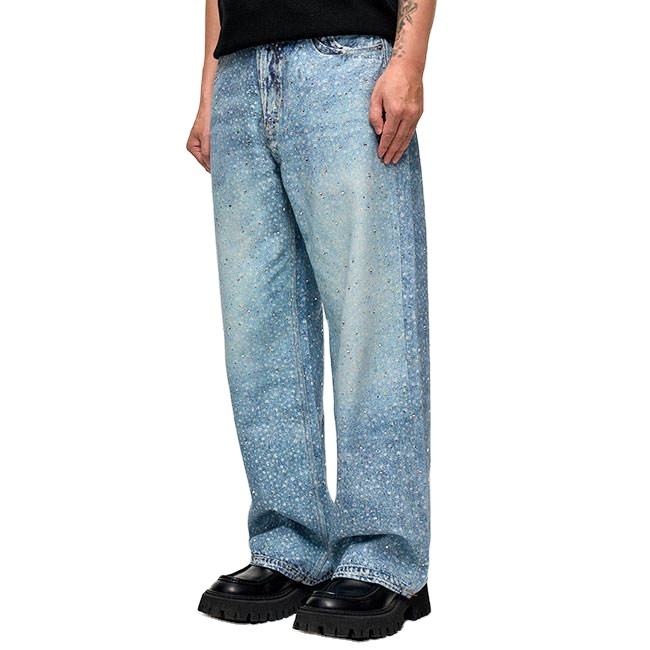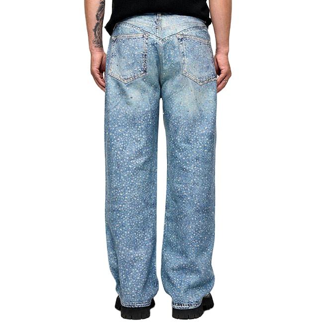 กางเกงยีนส์ทรงหลวมสำหรับผู้ชาย, กางเกงยีนส์สไตล์สตรีทพร้อมดีไซน์ประดับพลอยเทียมกันน้ำสำหรับฤดูใบไม้ผลิ