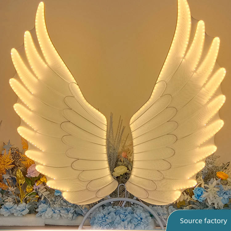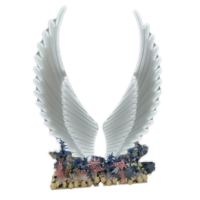 อุปกรณ์ประกอบฉากงานแต่งงานปีกนางฟ้าแบบขายส่งใหม่ สไตล์โมเดิร์น สีขาว/สีโทนอุ่น ตกแต่งพื้นหลังด้วยผ้าเหล็ก