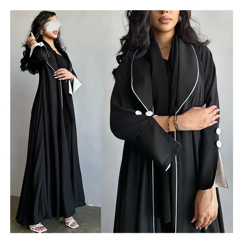 ชุดเดรสมุสลิมสีดำสำหรับผู้หญิงเสื้อคลุมยาวสไตล์ตุรกีหรูหราสง่างามสำหรับฤดูใบไม้ร่วงฤดูหนาว