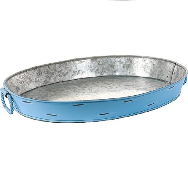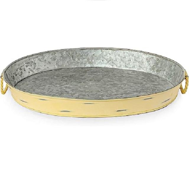ใหม่ขายส่งที่กําหนดเองถาดโลหะชุบสังกะสีที่มีสีด้านนอกในร่มอุปกรณ์ครัวชากาแฟจานเสิร์ฟอาหาร
