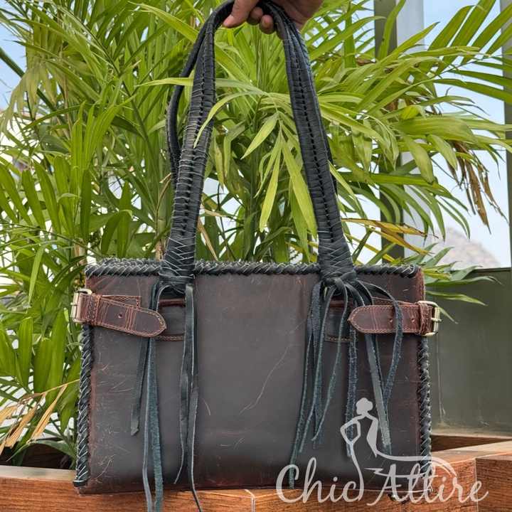 กระเป๋าโท้ทหนังแท้ลายไม้