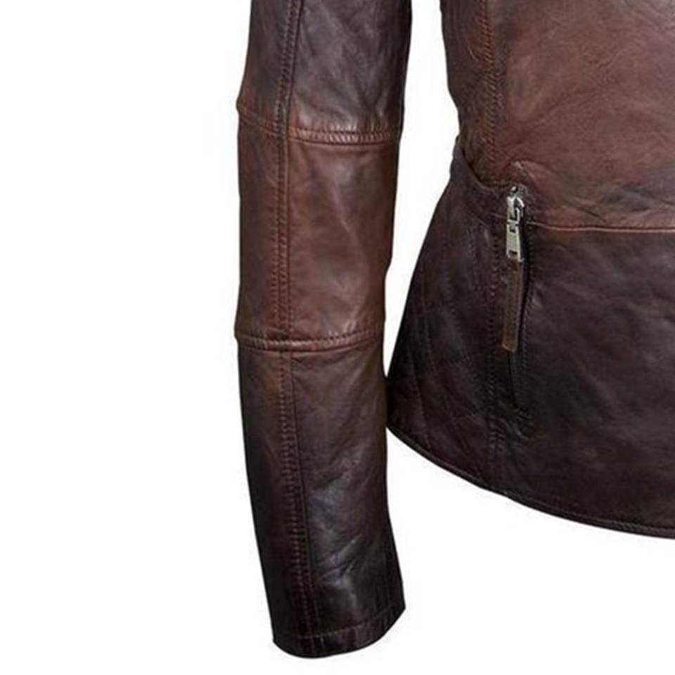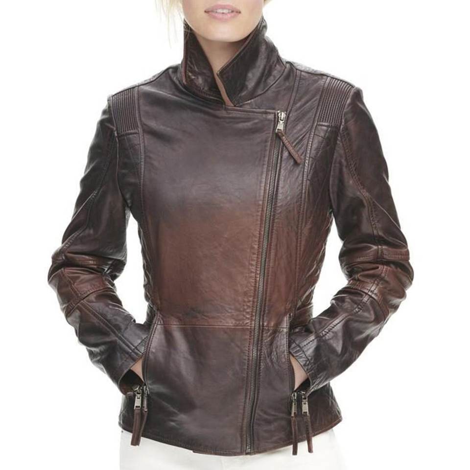 แจ็คเก็ตหนังแท้สไตล์วินเทจสำหรับผู้หญิงสีน้ำตาลพร้อมโลโก้สั่งทำขายส่งใหม่ เสื้อโค้ทหนังเท่ห์สำหรับฤดูหนาว แจ็คเก็ตบอมเบอร์แท้ สตรีทแวร์
