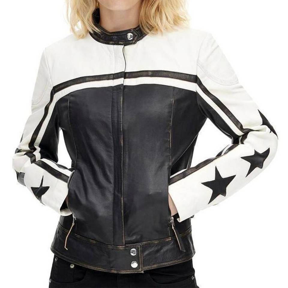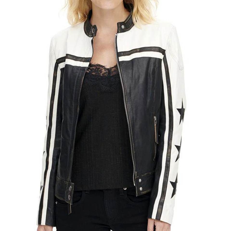 แจ็คเก็ตผู้หญิงสีขาวดำแบบใหม่ขายส่งพร้อมโลโก้สั่งทำ แจ็คเก็ตวินเทจฤดูหนาว แจ็คเก็ตบอมเบอร์หนังแท้ทันสมัย สไตล์สตรีทแวร์