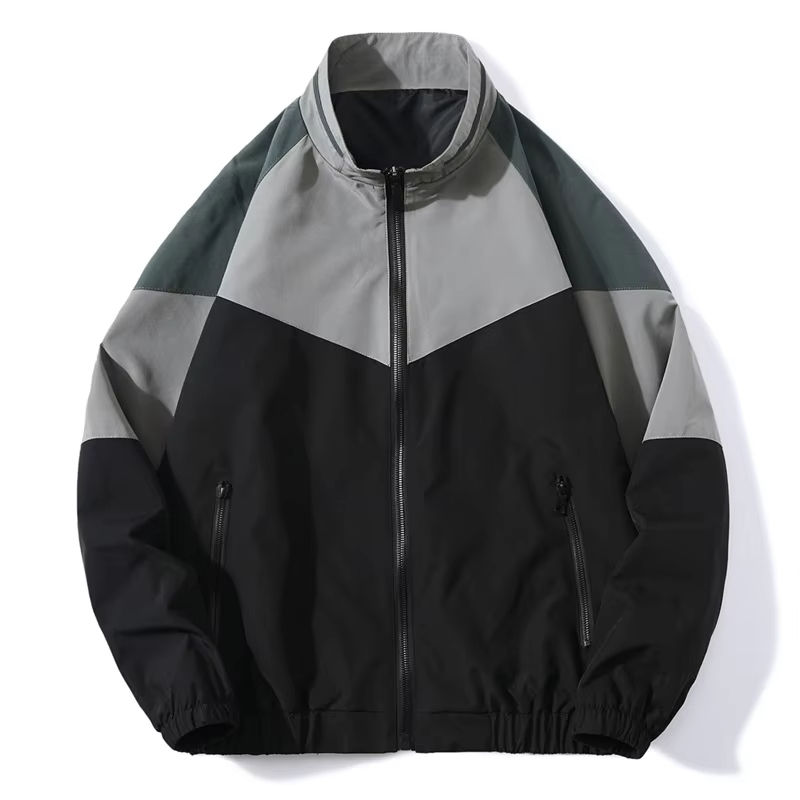 เสื้อแจ็คเก็ตไนลอนกันลมแบบใหม่สำหรับผู้ชาย ระบายอากาศได้ดี ไซส์พลัส แจ็คเก็ตโค้ช ไซส์ XS สีพื้น