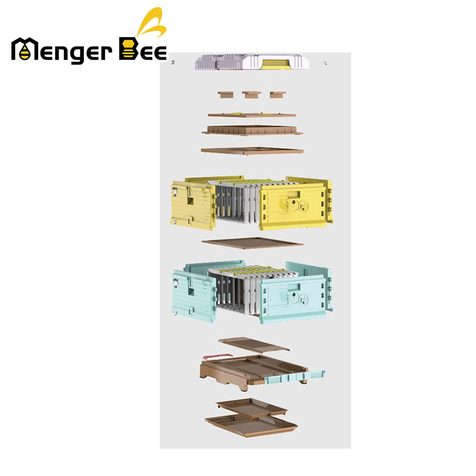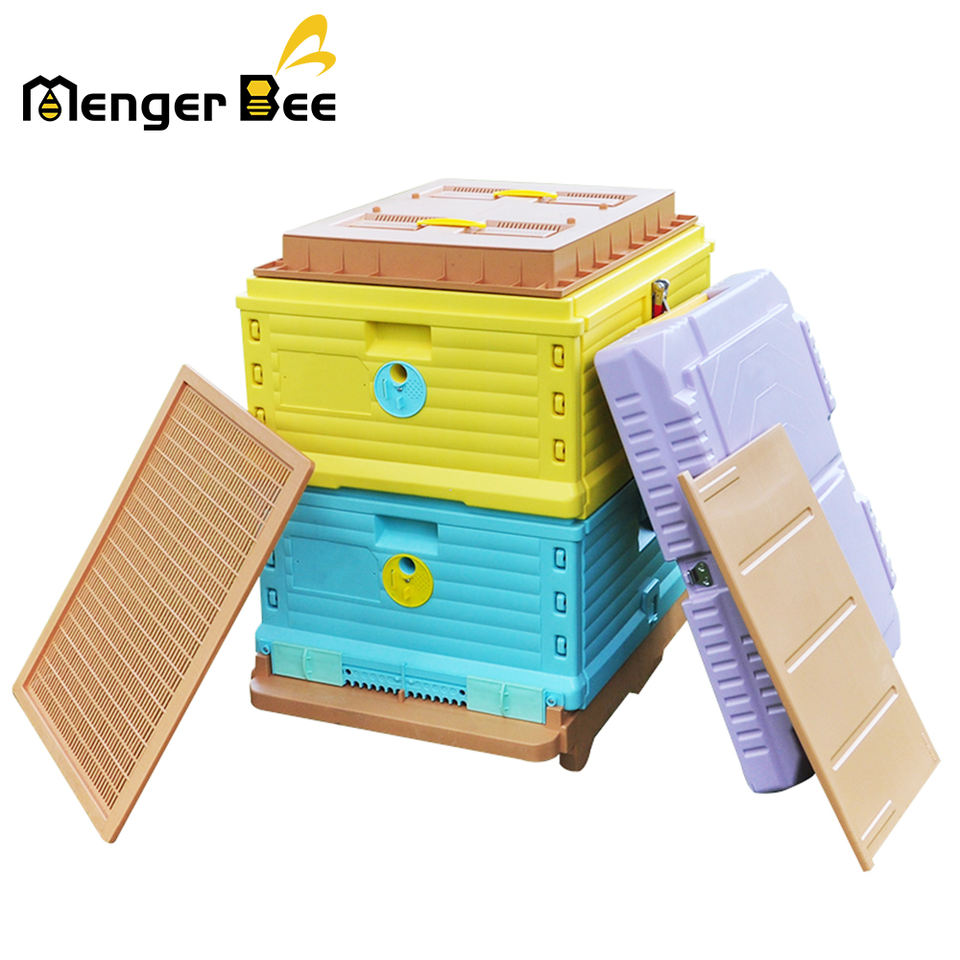 กล่องเลี้ยงผึ้งแบบ Langstroth สองชั้น สีสันสดใส ผลิตจาก HDPE เกรดอาหาร สำหรับฟาร์มผึ้ง 10 เฟรม รับประกัน 2 ปี
