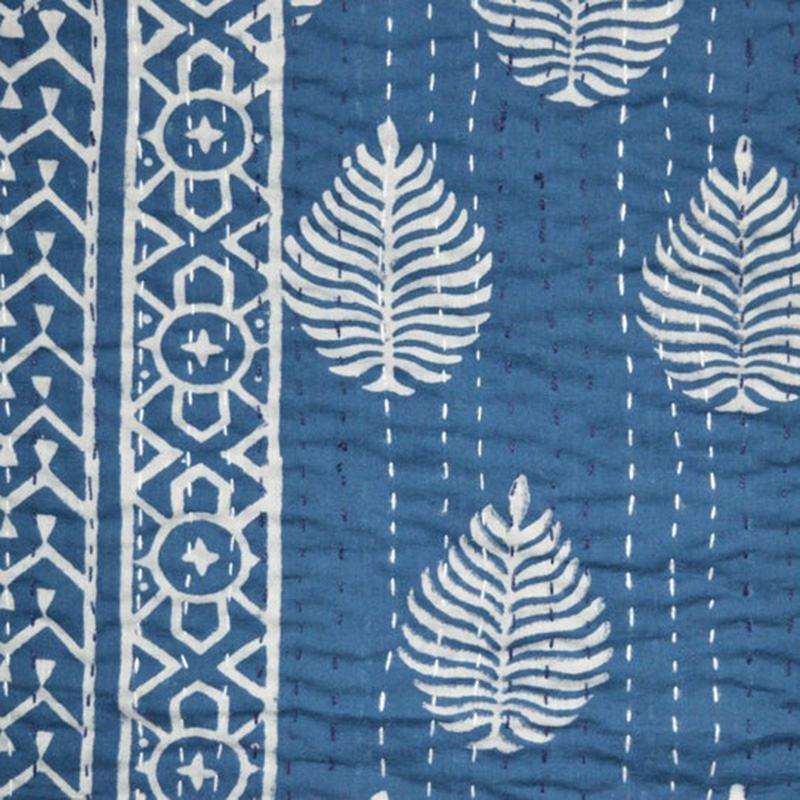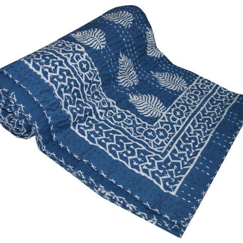 ผ้าคลุมเตียงคันธาแบบใหม่ ขายส่ง ลายพิมพ์ใบไม้ ทำจากผ้าฝ้ายทอมือ ย้อมสีธรรมชาติ สำหรับใช้ในบ้าน