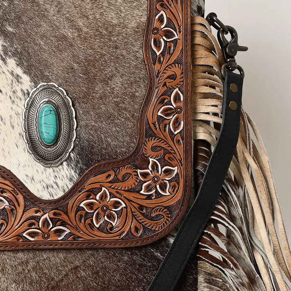 New Wholesale Girls Durable Cowhide Zipper Crossbody Shoulder Bag Carving Western Vintage Solitaire Design Ready to Stock