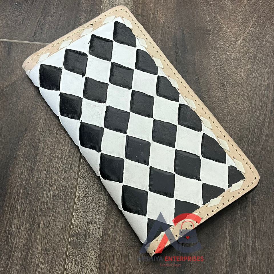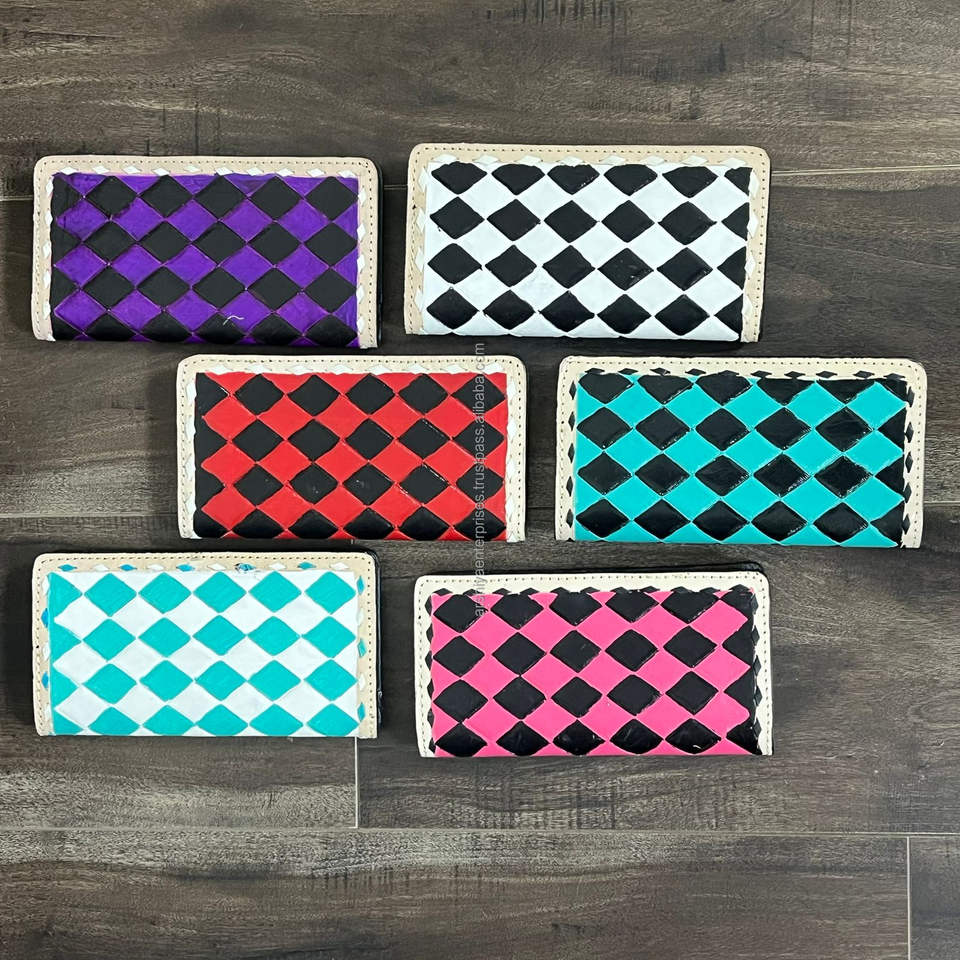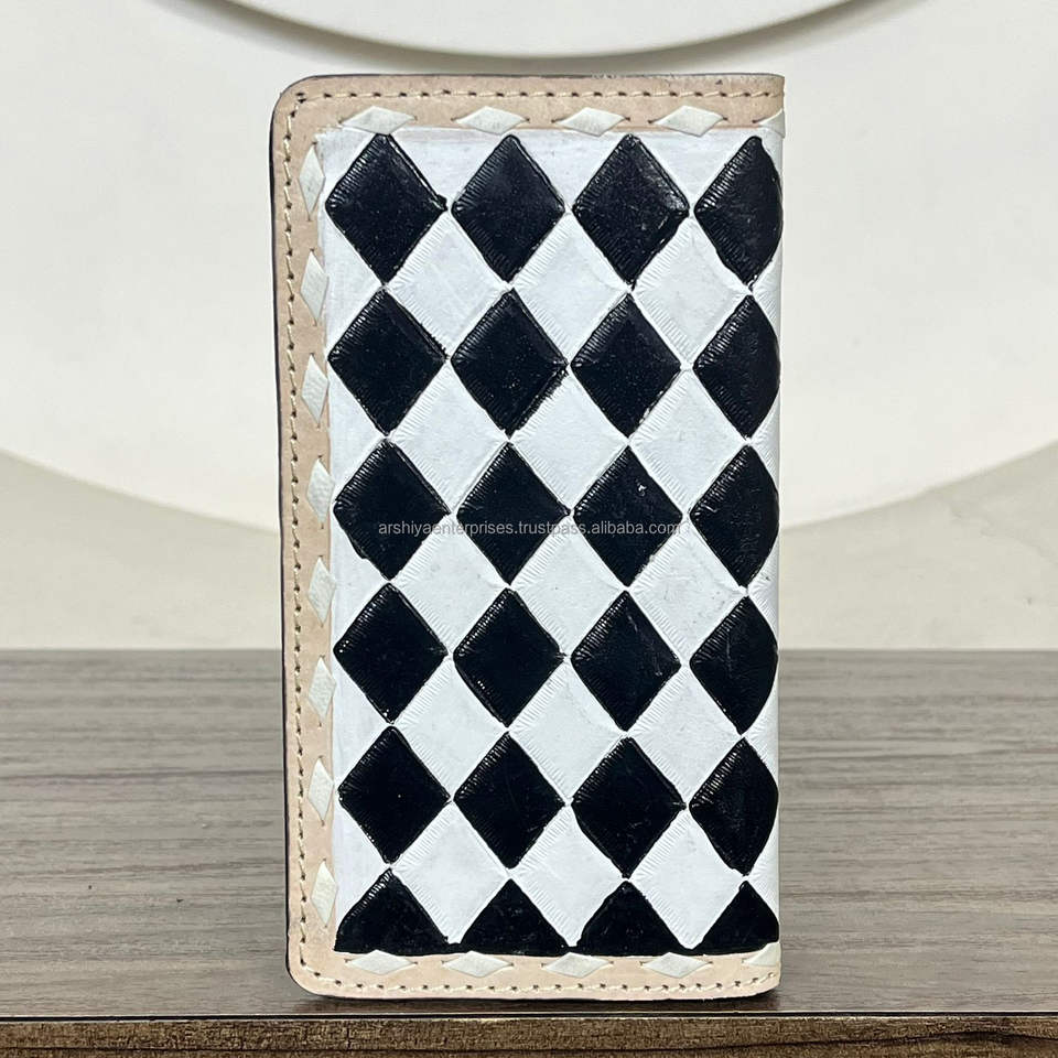ชื่อสินค้า:กระเป๋าสตางค์หนังแท้ลายตารางแบบพับสองที่ทำด้วยมือ