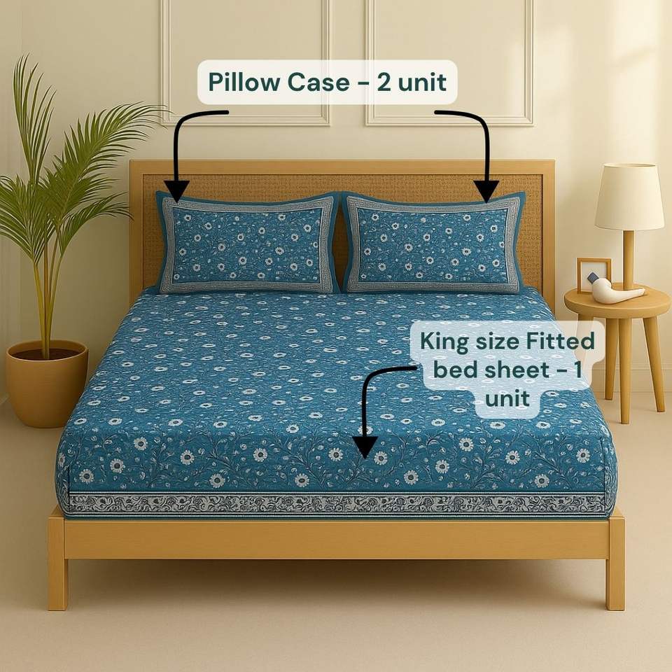 รวมส่วนประกอบ: 1 Fitted Bed sheet + 2 Pillow Cases