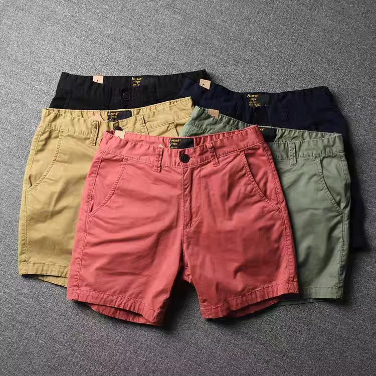 กางเกงขาสั้นผู้ชายขายส่งแบบใหม่ ผ้าฝ้าย 100% สีพื้น ระบายอากาศได้ดี เป็นมิตรกับสิ่งแวดล้อม ป้องกันรอยยับ แห้งเร็ว ปรับแต่งได้ สวมใส่สบาย