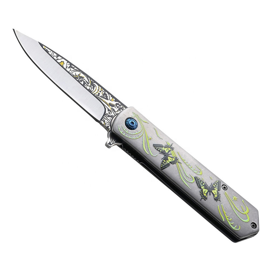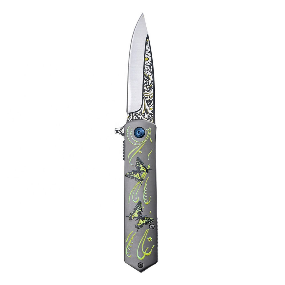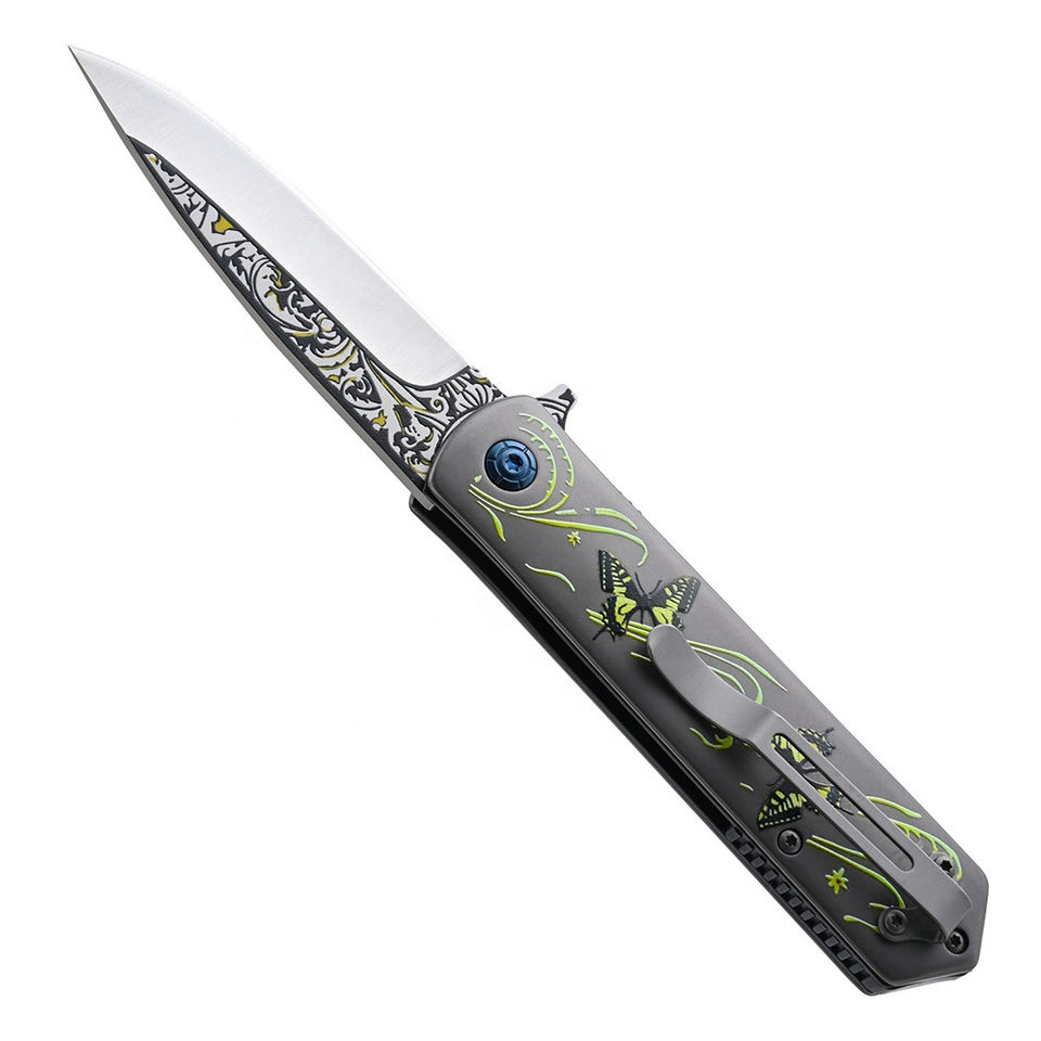 มีดพับได้มีกระเป๋าหนีบเหล็กดามัสกัสใช้สำหรับล่าสัตว์ใช้ตั้งแคมป์กลางแจ้งสินค้าใหม่