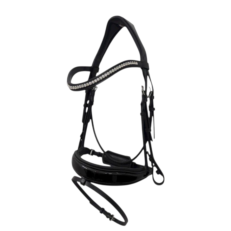 บังเหียนม้าหนังแท้พรีเมียมแบบใหม่ สายคาดหน้าผากประดับคริสตัล สายรัดจมูกบุหนังแก้ว โลโก้และสีตามสั่ง ADIBA