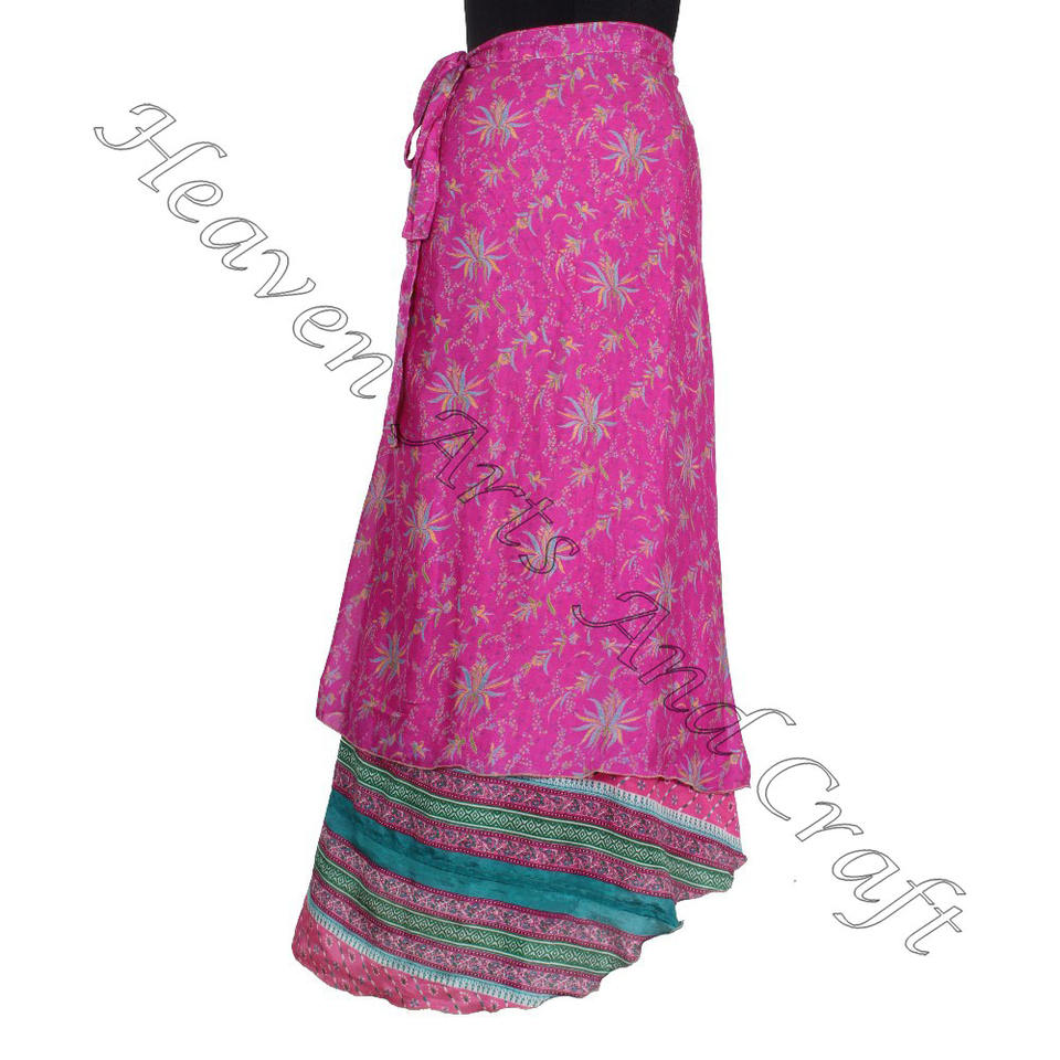 กระโปรงผ้าไหมสองชั้นแบบกลับด้านได้กระโปรงห่อผ้าไหมเมจิกยาว38นิ้วแบบย้อนยุค