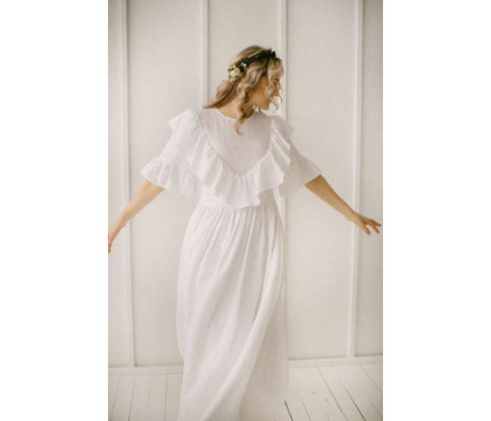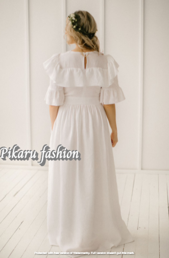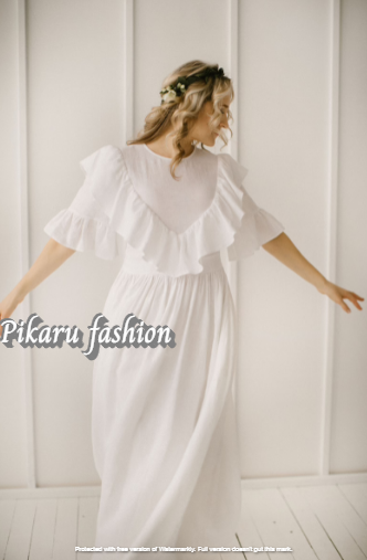ชุดเดรสยาวสไตล์ยิปซี,ชุดกระโปรงแฟชั่นแขนสั้นมีระบายสไตล์โบฮีเมียนสีขาวสำหรับฤดูร้อน