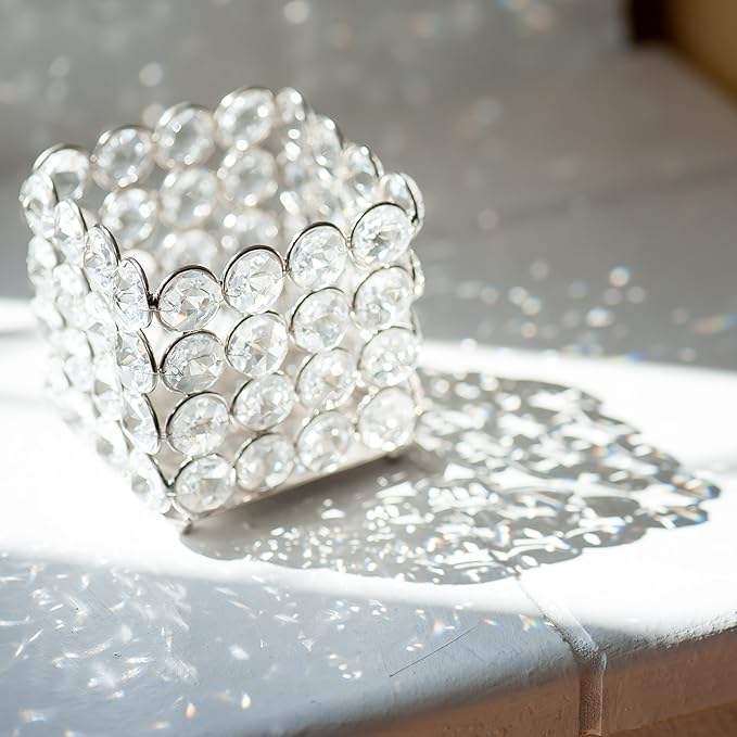 เชิงเทียนโลหะทรงสี่เหลี่ยมประดับลูกปัดเชิงเทียนสำหรับงานแต่งงานและตกแต่งบ้าน
