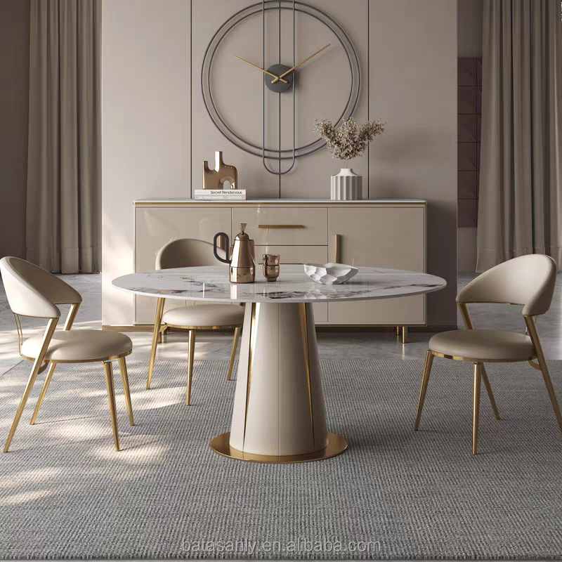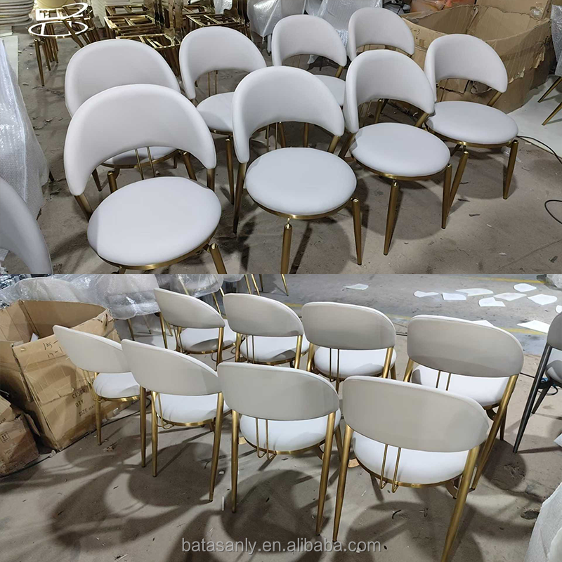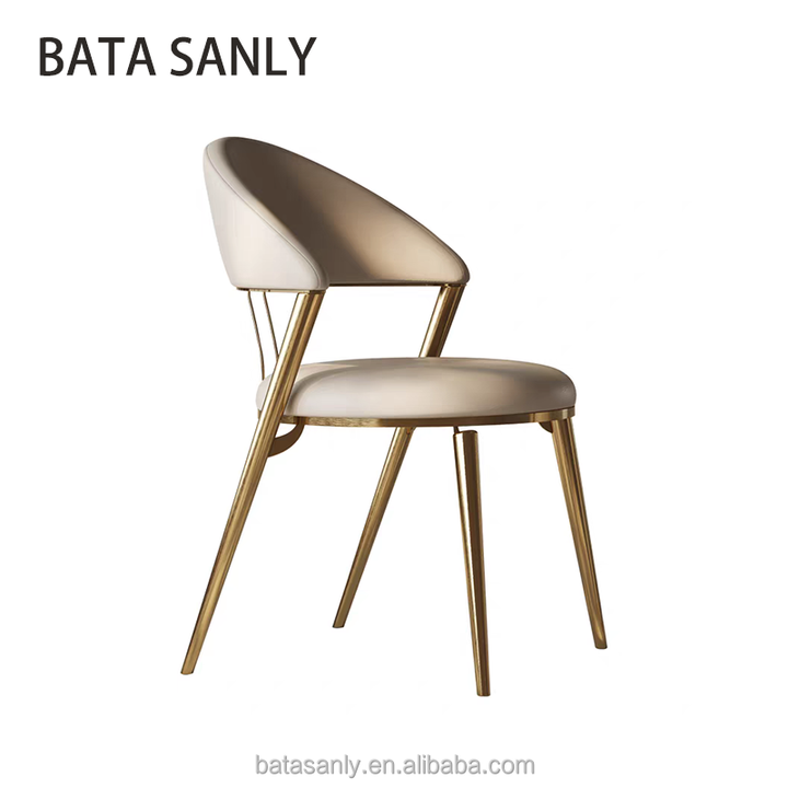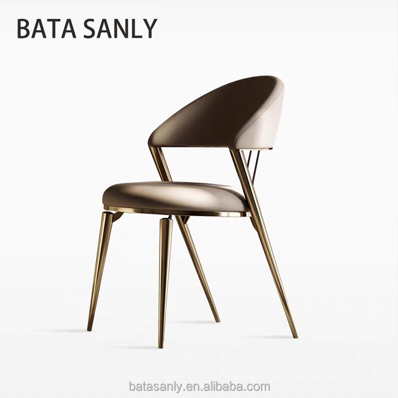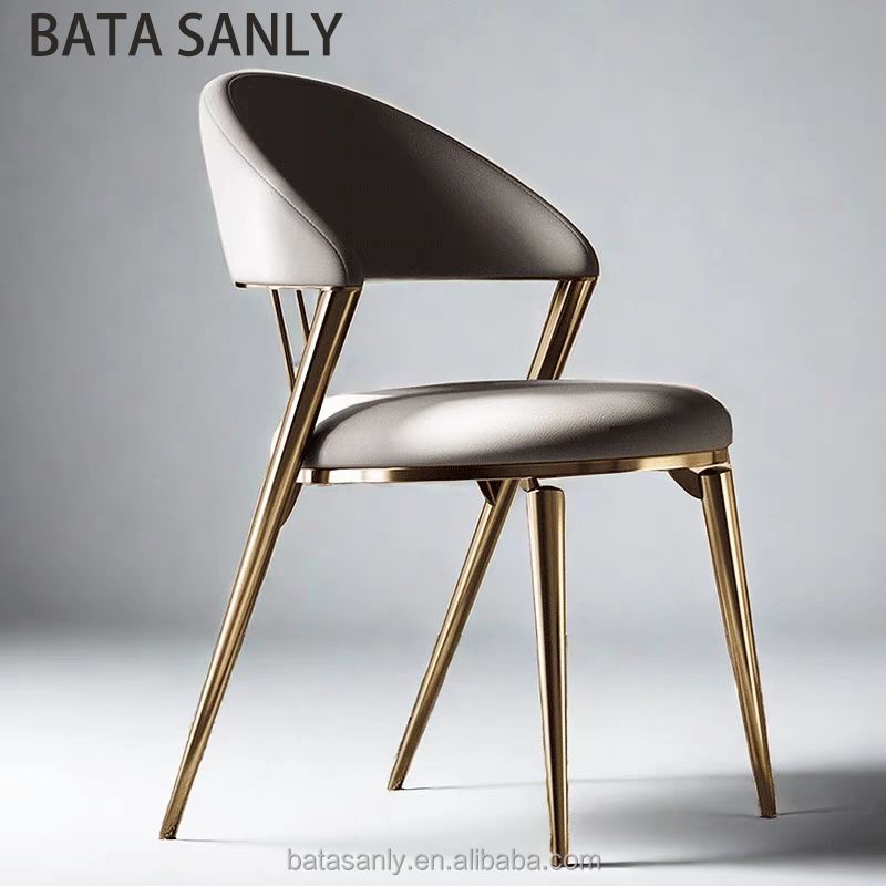 เก้าอี้รับประทานอาหารสแตนเลสสตีลขาสีทองหรูหราสไตล์โมเดิร์นหุ้มหนังสีเทาและสีทองสำหรับร้านอาหารของโรงแรม