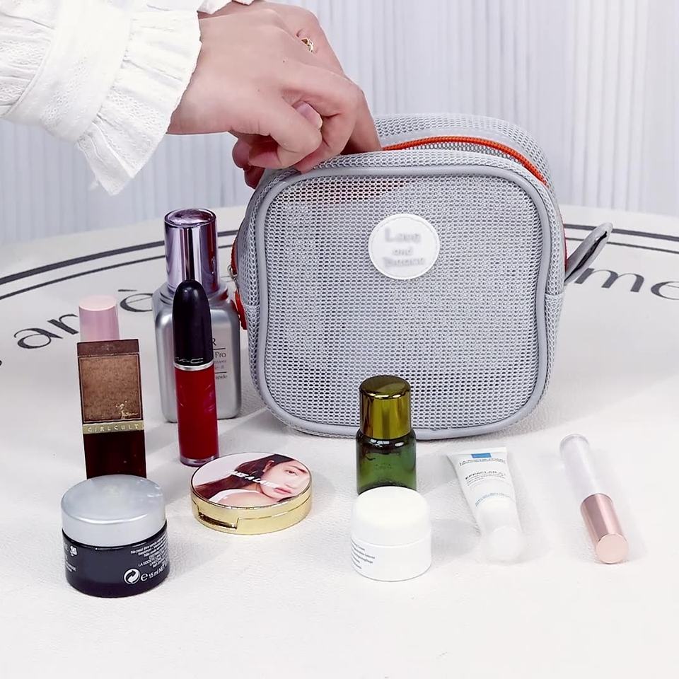 กระเป๋าเครื่องสำอางตาข่ายจัดระเบียบมีซิปกระเป๋าเครื่องสำอางแฟชั่นความจุขนาดใหญ่สำหรับเดินทาง