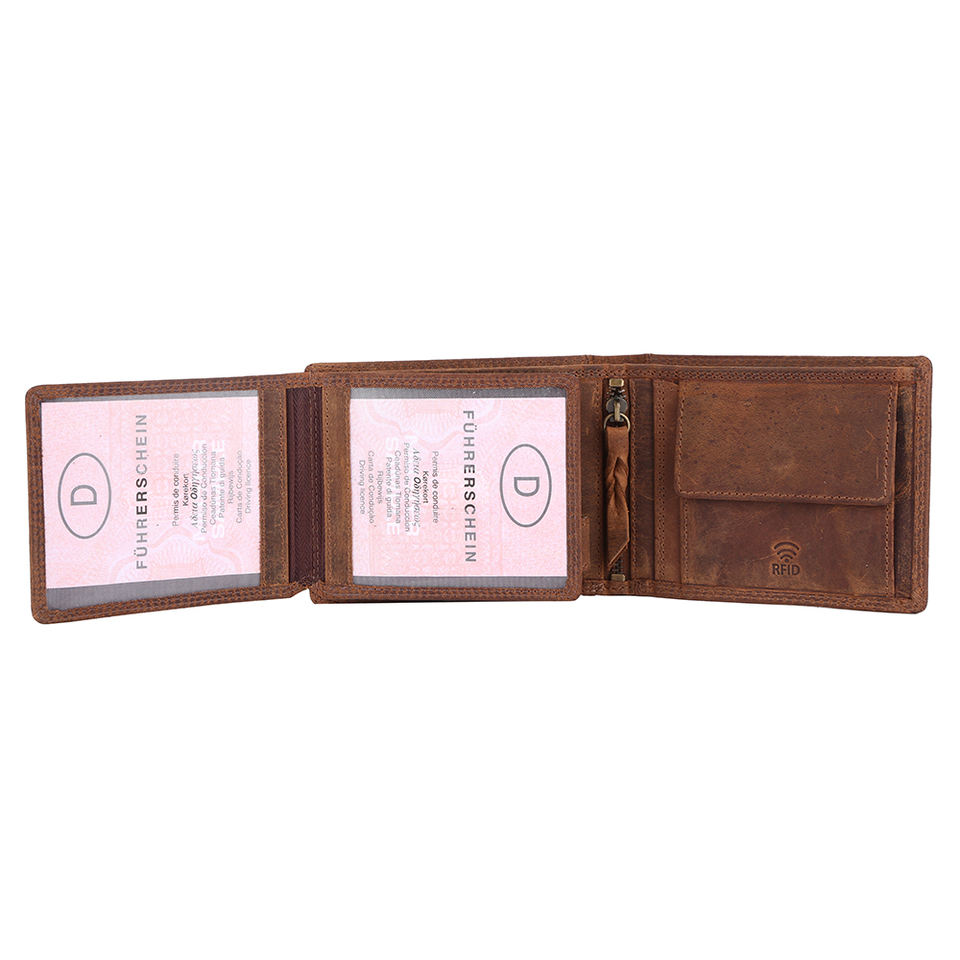 กระเป๋าสตางค์ใบสั้นหนังดิบของผู้ชายมีซับในเป็นผ้าฝ้ายประดับโซ่ตกแต่งแบบเปิดปิดรุ่นใหม่ส่งออกในอินเดีย